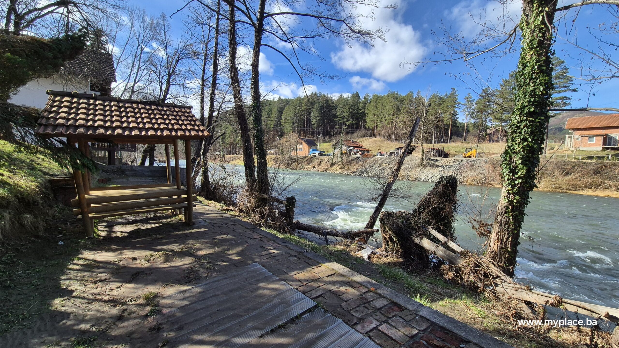 Popločana staza od cigle uz samu rijeku