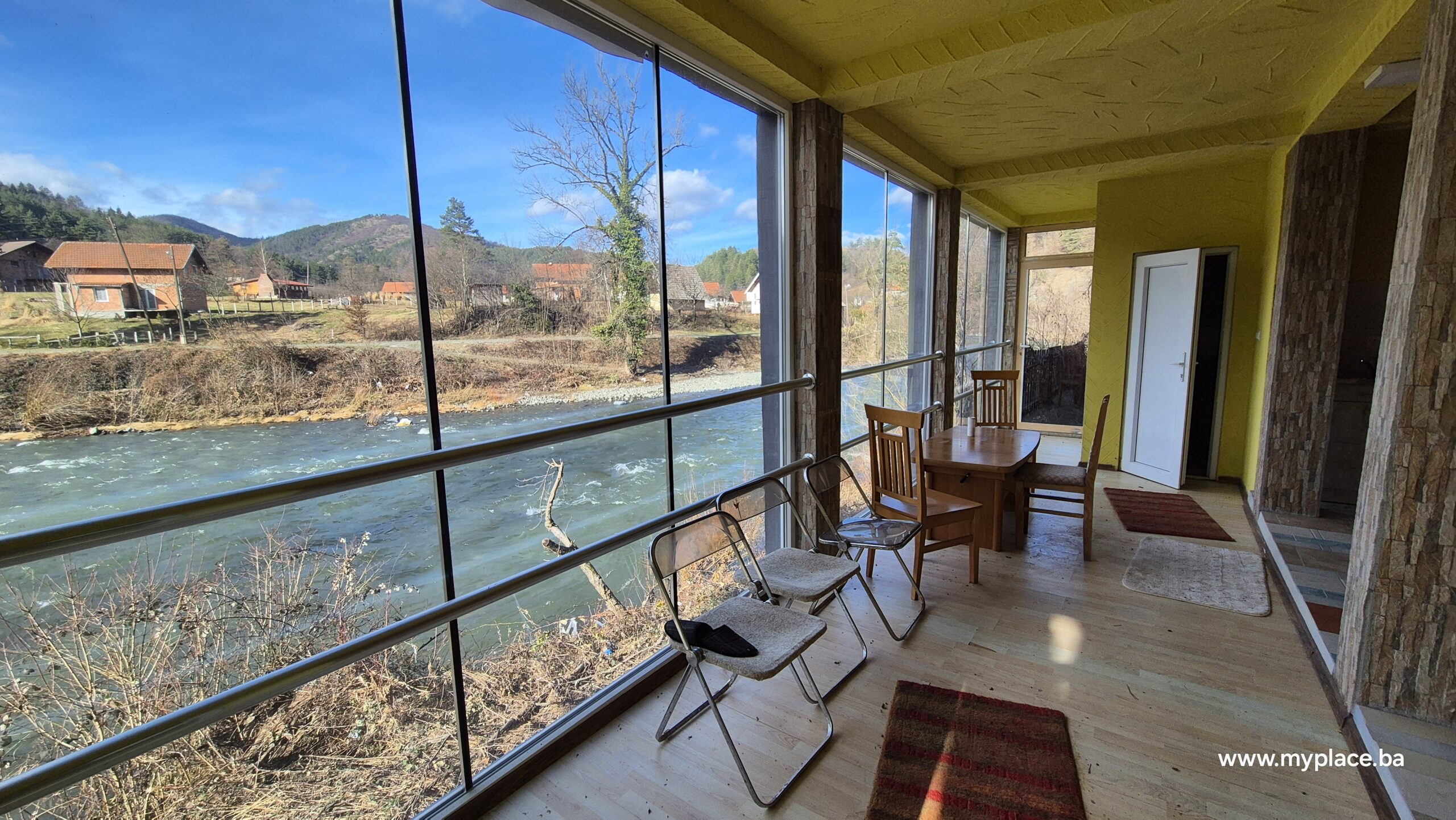 Prostorija za odmor sa staklenim portalima i prelijepim pogledom na rijeku