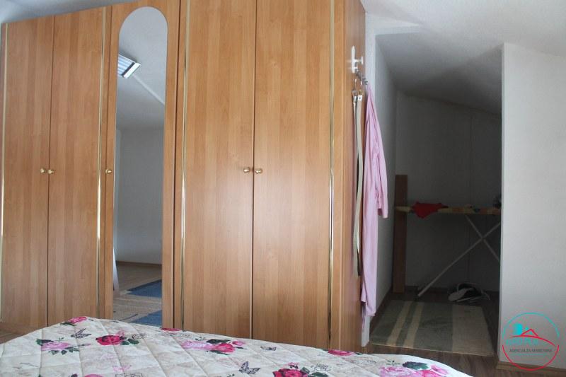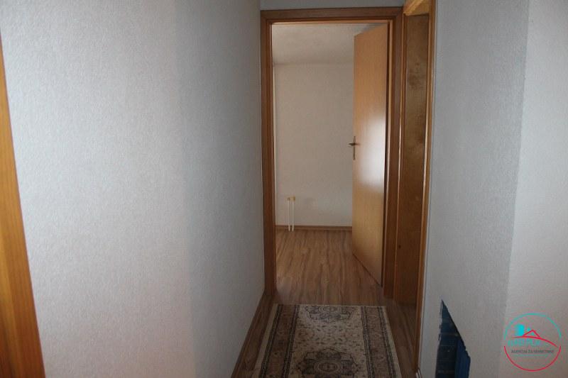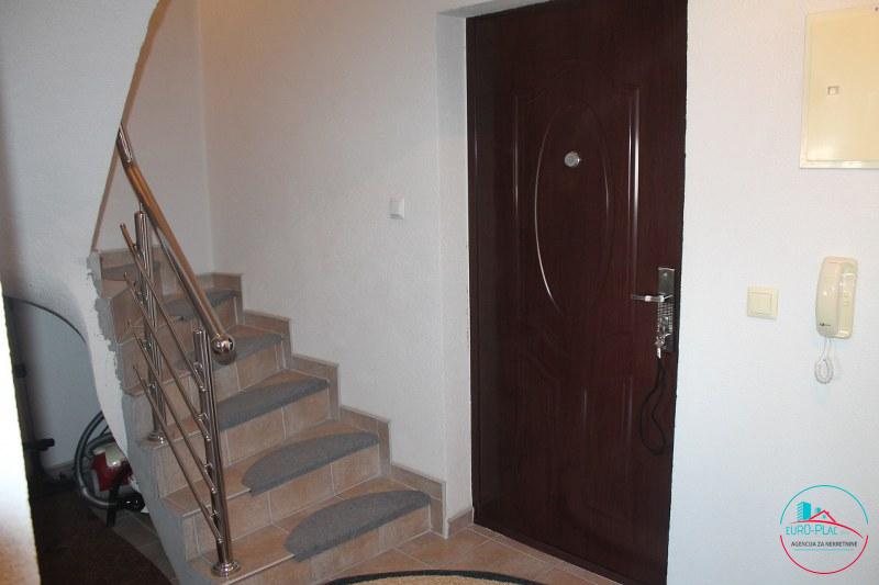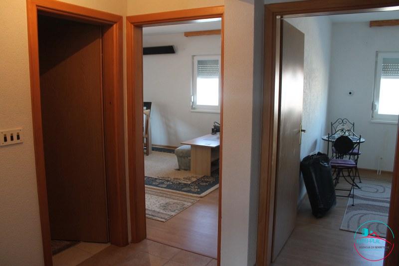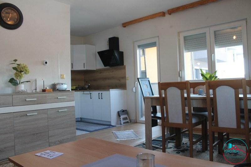 Prodaje se namješten i useljiv stan sa 3 spavaće sobe. Stan je izgrađen u dvije etaže sa ukupno 96.65 m2 površine. U prvoj etaži nalazi se hodnik, wc, dnevni boravak sa kuhinjom i trpezarijom i jedna spavaća soba površine od 46.98 m2, dok na drugoj etaži su smještene još dvije spavaće sobe, ostava i kupatilo sa površinom od 49.67 m2. Stan se nalazi u stambenom kompleksu na mirnoj lokaciji ulica Kasima Ljubijankića u pravcu naselja Slatina, a smješten je u zgradi koja služi za kolektivno stanovanje na trećem spratu skupa sa potkrovljem zgrade. Stan je udaljen 950 m od autobusne stanice i tržnog centra “Bingo” kao i poznatog urbanog naselja Ćuprija u Cazinu. Poseban šarm cijelom prostoru zgrade daje središnje dvorište kao i veliki parking ispred zgrade. Riječ je o funkcionalnom stanu koji se odlikuje optimalnim rasporedom i organizacijom prostora. Stan je vrlo malo korišten, odmah je useljiv i namješten. U stanu su dodatno ugrađene ALU roletne, kuhinja je rađena po mjeri sa svim potrebnim aparatima. Uz stan dolazi i pripadajuća ostava koja je smještena u suterenu zgrade. 𝗖𝗶𝗷𝗲𝗻𝗮 𝘀𝘁𝗮𝗻𝗮 𝗶𝘇𝗻𝗼𝘀𝗶 𝟭𝟵𝟱𝟬 𝗞𝗠 𝗽𝗼 𝗸𝘃𝗮𝗱𝗿𝗮𝘁𝘂 (𝟭 𝟬𝟬𝟬 𝗲𝘂𝗿/𝗺𝟮). Svi uređaji i namještaj su uključeni u cijenu stana. Pogodno je za sve one koji vole svoj mir kao i za višečlanu porodicu. Iskoristite priliku.